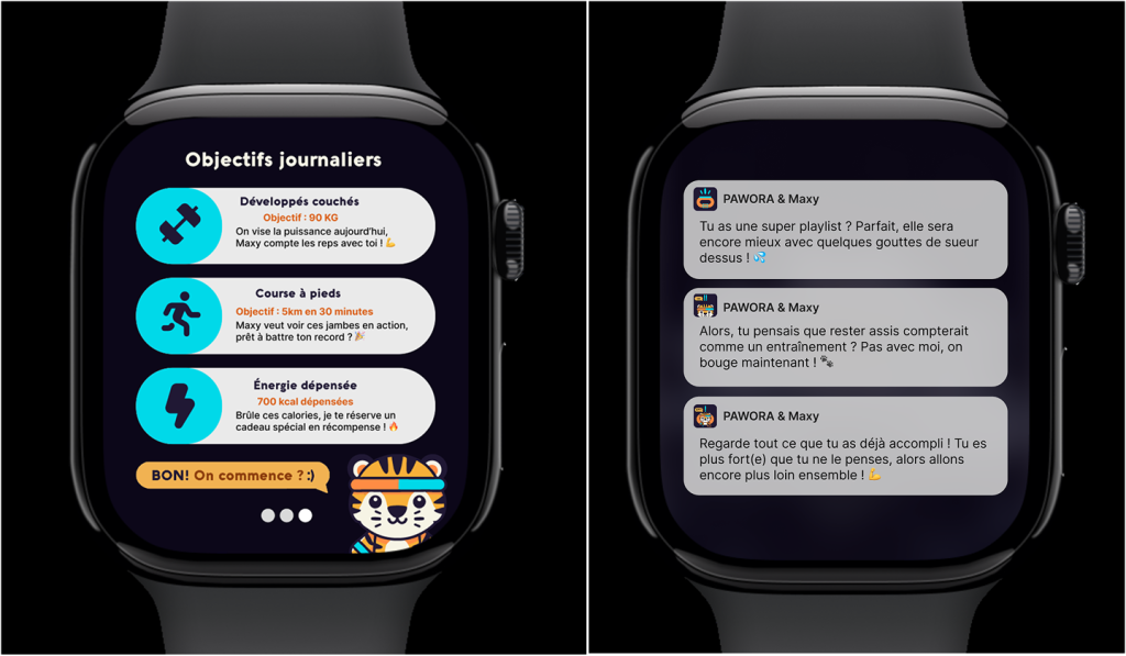 Pensée principalement pour les montres connectées (Apple Watch, Galaxy Watch), Pawora aide les utilisateurs à suivre leurs entraînements, progresser et rester motivés grâce à une expérience ludique et personnalisée.