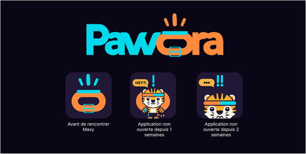 Le concept clé de Pawora réside dans son icône d’application qui change d’expression selon l’assiduité de l’utilisateur. Cette gamification visuelle crée un lien émotionnel fort :
