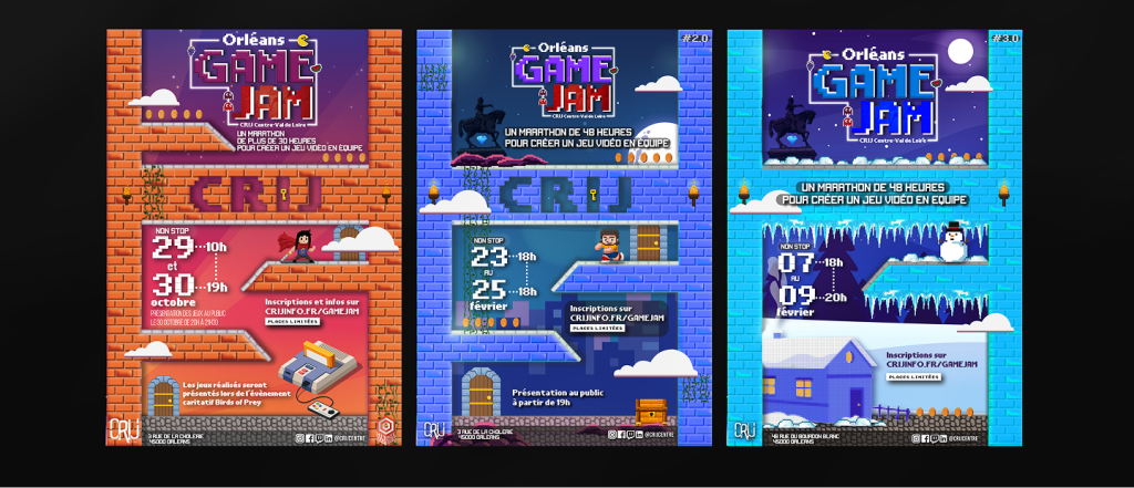 Grâce à une identité visuelle forte et une communication cohérente sur trois éditions, l’Orléans Game Jam s’est imposée comme un rendez-vous incontournable pour la communauté gaming du Centre-Val de Loire. L’événement attire chaque année davantage de participants, d’étudiants en game design et de professionnels du secteur.