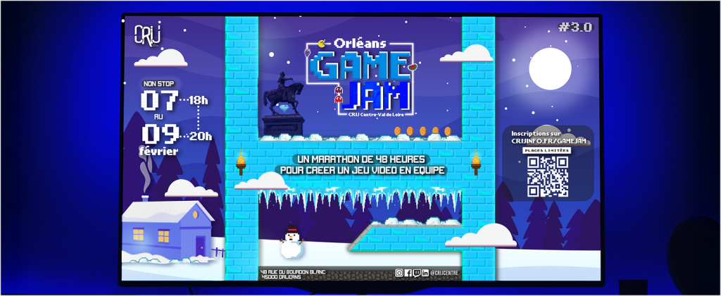 L’Orléans Game Jam est un marathon créatif annuel qui invite passionnés, développeurs débutants et confirmés à concevoir un prototype de jeu vidéo en 48 heures chrono. Organisé par le CRIJ Centre-Val de Loire, cet événement mêle créativité, code et esprit d’équipe dans une ambiance conviviale et collaborative.